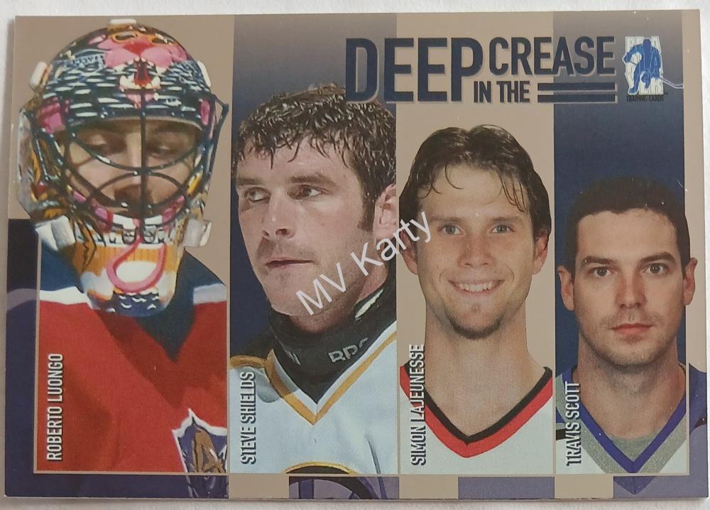 - 2003-04 In the Game Be A Player Memorabilia - Deep in the Crease #DC-14 Roberto Luongo, Steve Shields, Simon Lajeunesse, Travis Scott