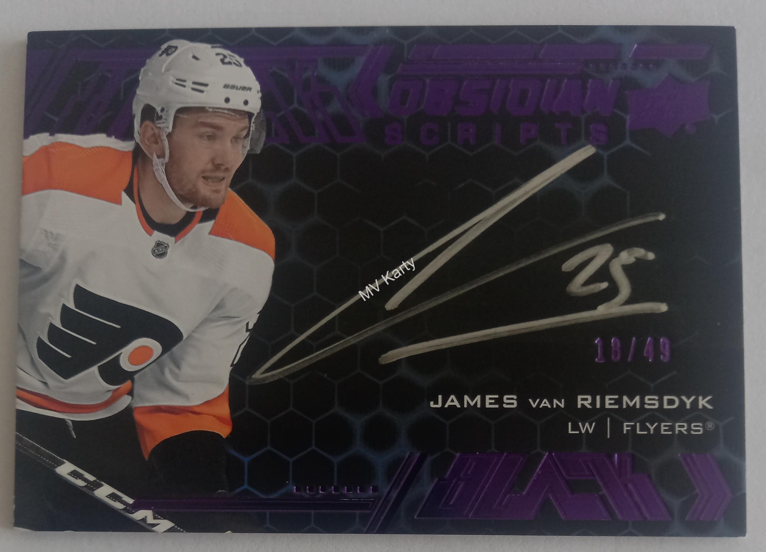 AUTO karta James van Riemsdyk 20-21 UD Black Obsidian Scripts Purple /49Skladem 1 ks599 Kč/ ks